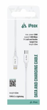 iPEAX TPU kabel USB-C / Lightning 1,5M, USB 2.0 bílý