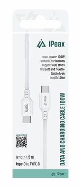 iPEAX TPU kabel USB-C / USB-C 1,5M, USB 2.0 bílý