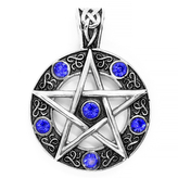 Přívěsek PENTAGRAM s kamínky MODRÝ - chirurgická ocel