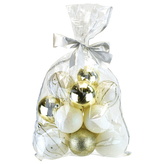 Vánoční koule v sáčku, assort, bílé/zlaté, 14 ks