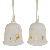 Zvonek z porcelánu s LED osvětlením 14x8 cm, set 2 ks