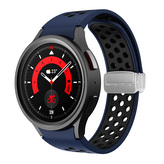 Perforovaný magnetický řemínek pro Samsung Watch 4/5/6,Tmavěmodro-černý se stříbrnou přezkou