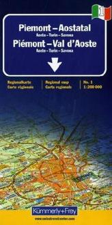 Kümmerly & Frey Karte Piemont, Aostatal. Piemont, Val d' Aoste. Piedmont, Aosta Valley. Piemonte, Valle d' Aosta