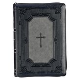 KJV Holy Bible, Super Giant Print Faux Leather Red Letter Edition - Thumb Index & Ribbon Marker, King James Version, Gray/Black
