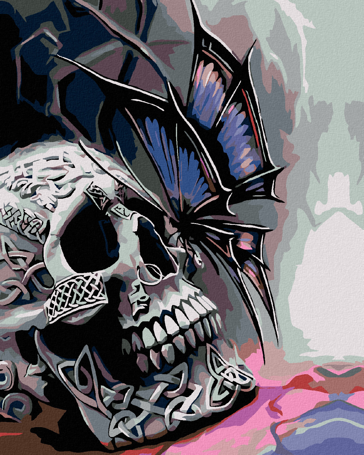 Malování podle čísel - LEBKA A MOTÝL - 80x100 cm, vypnuté plátno na rám