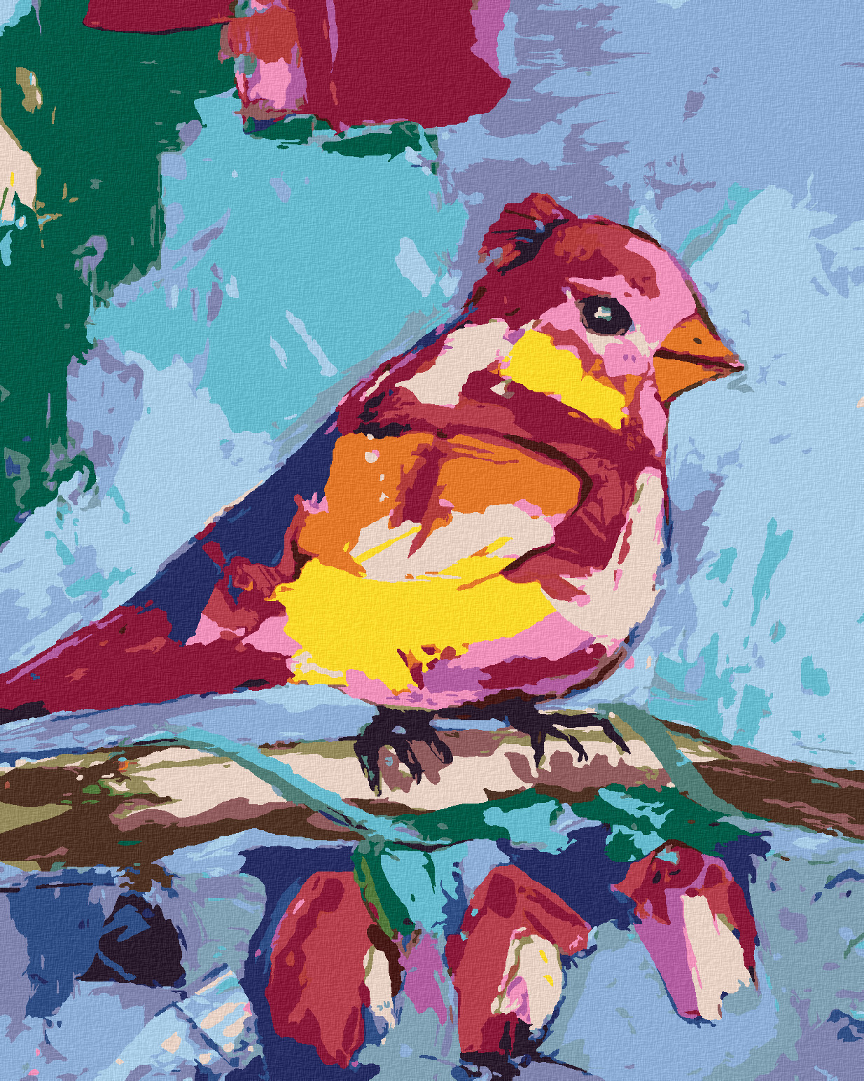 Malování podle čísel - BAREVNÝ PTÁČEK NA VĚTVI - 80x100 cm, vypnuté plátno na rám