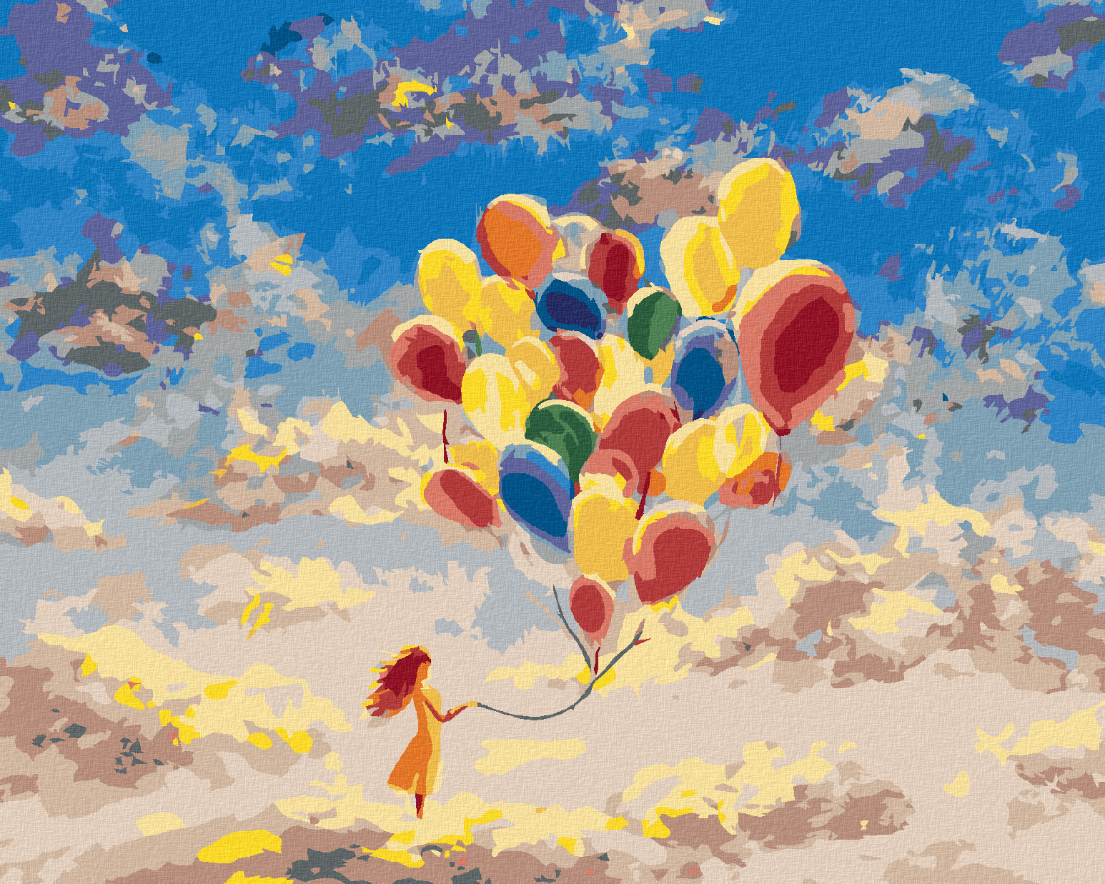 Malování podle čísel - DÍVKA S BAREVNÝMI BALÓNKY - 80x100 cm, bez rámu a bez vypnutí plátna
