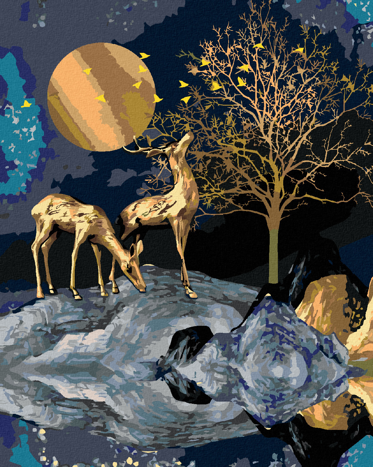 Malování podle čísel - ZLATÝ JELEN NA SKÁLE - 80x100 cm, bez rámu a bez vypnutí plátna