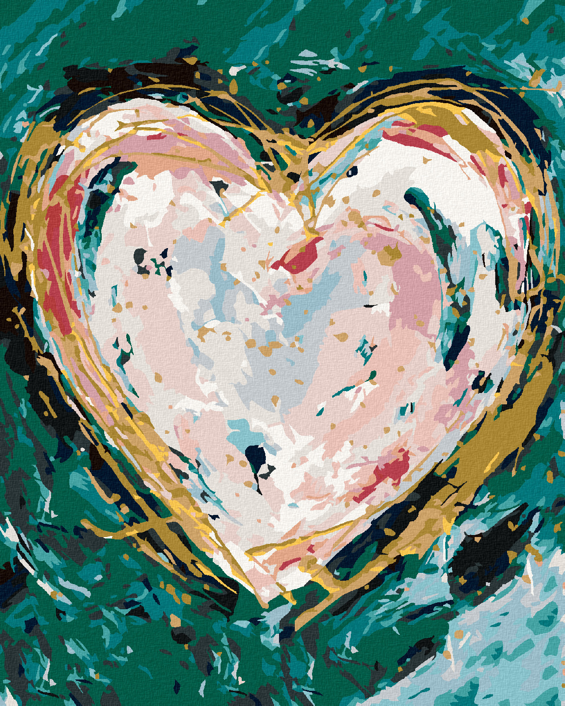 Malování podle čísel - BAREVNÉ SRDCE NA ZELENÉM POZADÍ (HALEY BUSH) - 80x100 cm, vypnuté plátno na rám