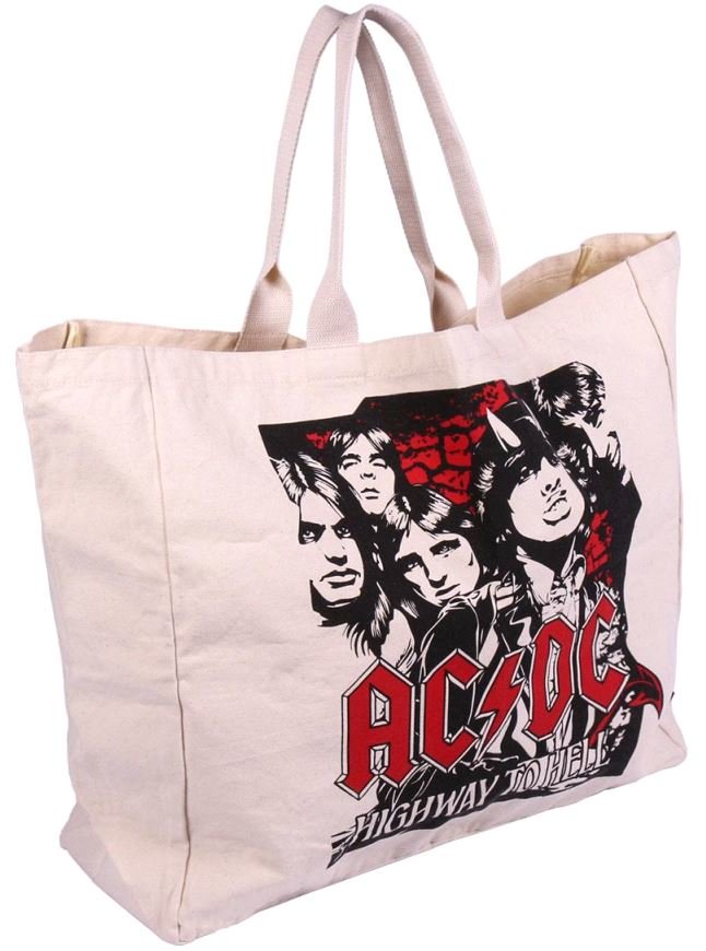 Béžová shopping taška inspirovaná hudební skupinou AC/DC a jejich logem.