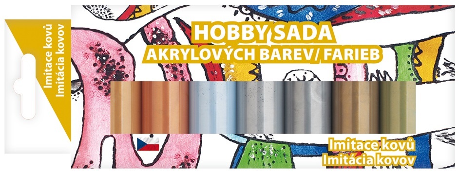Hobby sada akrylových farieb IMITÁCIA KOVOV ponúka vynikajúcu kryciu schopnosť a výbornú priľnavosť na široké spektrum podkladov - papier, drevo, keramiku, plast, kov aj kamienky. Je ideálna pre techniky ako servítková technika, alebo kedykoľvek chcete svojim výtvorom dodať luxusný kovový vzhľad.
