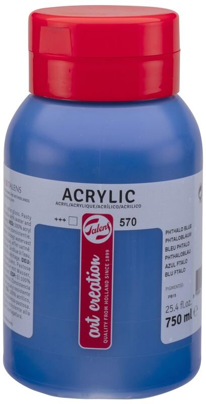 Akrylová farba 750 ml Phthalo Blue 570 Art Creation od Talens je ideálnou voľbou pre všetkých, ktorí chcú dosiahnuť žiarivé a stálye farby pri maľovaní.