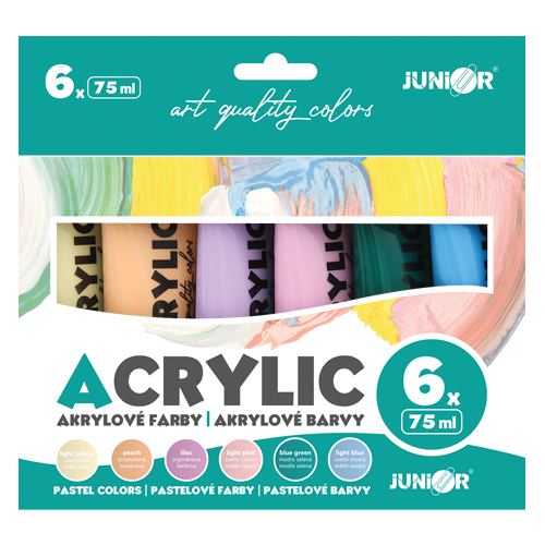Akrylové barvy JUNIOR 75 ml - 6 ks sada Pastel