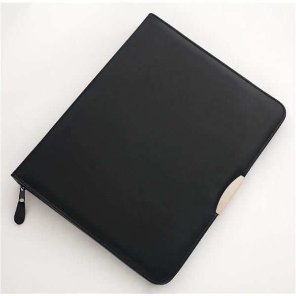 Konferenční desky ze syntetické černé kůže uzavíratelné na zip; přihrádky na dokumenty a vizitky Součástí je čtyřkroužková mechanika a poznámkový blok prečítať celé