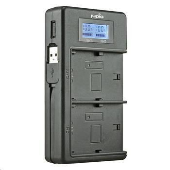 Inteligentní duální nabíječka Jupio JDC2013 s displejem může nabíjet až dvě baterie Sony NP-FZ100 zároveň. Napájení probíhá přes USB vstup.O procesu nabití každého akumulátoru zvlášť informuje LCD obrazovka. Nabíječku osazenou akumulátory lze díky USB výstupu využít jako powerbanku s výstupem 5 V...