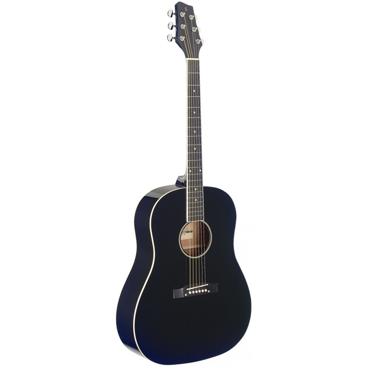 Akustická kytara typu Slope Shoulder Dreadnought. Vrchní deska lípa, spodní deska, luby a krk catalpa, hmatník a kobylka syntetické dřevo, tělo lemováno bílou výložkou, mechanika die-cast niklovaná. Barva černá lesklá.