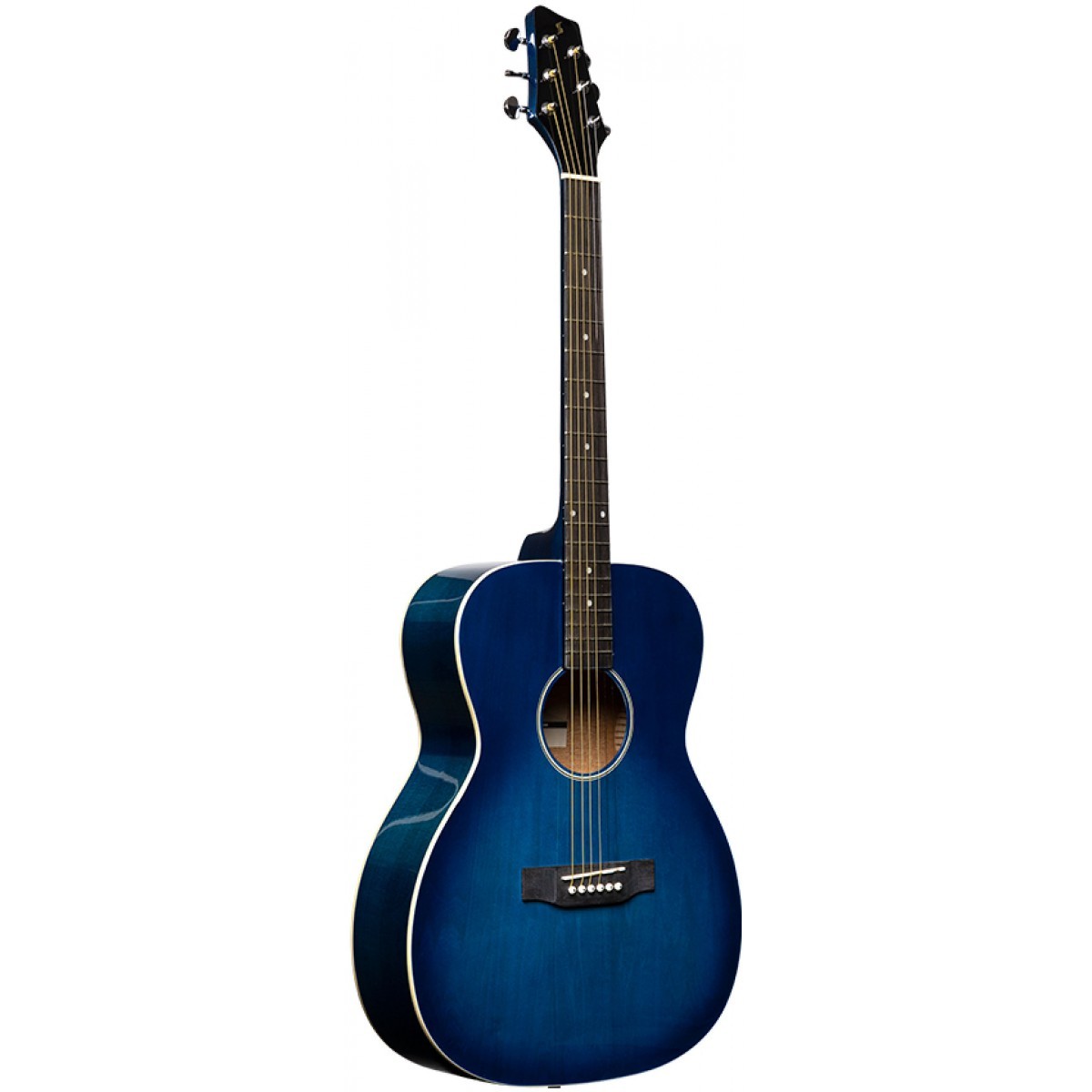 Akustická kytara typu Auditorium. Vrchní deska lípa, spodní deska, luby a krk catalpa, hmatník a kobylka syntetické dřevo, tělo lemováno bílou výložkou, mechanika die-cast niklovaná. Barva modrá lesklá.