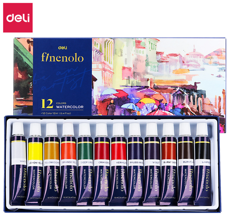 Farby akwarelowe seria finenolo 12 kolorów 12ml tuba, Deli
