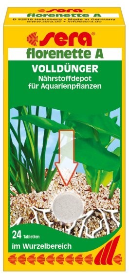 Hnojící tablety zásobují všechny vodní rostliny, které přijímají živiny hlavně skrze kořeny, všemi důležitými minerály a stopovými prvky pro zdravý a barvitý růst. Specielní stabilizátor umožňuje, že živiny, především železo, zůstává pro rostliny ve vodě dostupné dlouhodobě. Sera Florena...