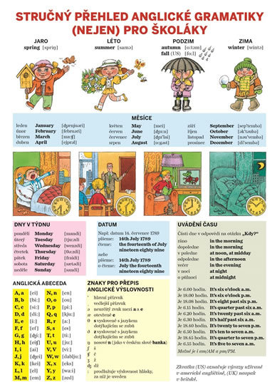 V této přehledné příručce najdete prakticky uspořádaný přehled anglické gramatiky. Od anglické abecedy, předložek in, on, at, základních a řadových číslovek a znaků pro přepis anglické výslovnosti až po dny v týdnu, měsíce, uvádění času, data, roční období, ale i výrazy pro množství, množné číslo...