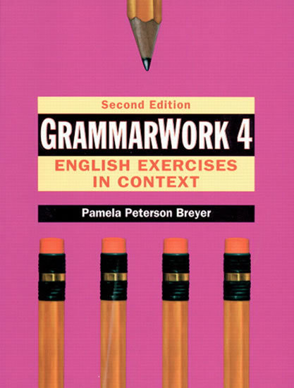 GrammarWork, English Exercises in Context, Second Edition, by Pamela Peterson Breyer, is a four-level series of exercise books that feature structures tied to meaningful contexts. Self-contained, contextualized exercises are designed for written practice, Make It Work sections enable students to apply what they have learned to realistic situations. Perforated answer keys are included. GrammarWork 4 is for high-intermediate students.