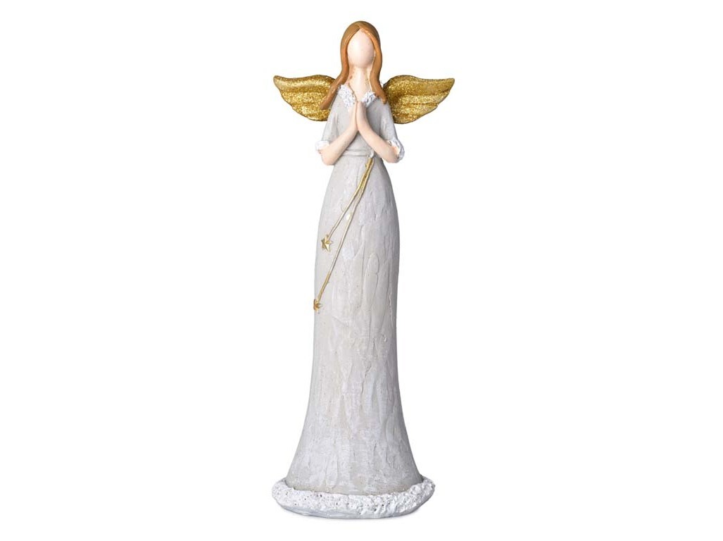 Tento okouzlující andílek v elegantní kombinaci šedé a zlaté barvy se stane perfektní dekorací pro váš domov během vánočních svátků i mimo ně. Andílek má rozměry 90x240mm, takže je ideální pro umístění na stůl, krbovou římsu, komodu nebo do okenního parapetu. Andílek je vyroben z odolného polyresinu, který je lehký a zároveň pevný. Jemné detaily a precizní zpracování dodávají andílkovi realistický vzhled a zaručeně upoutají pozornost.