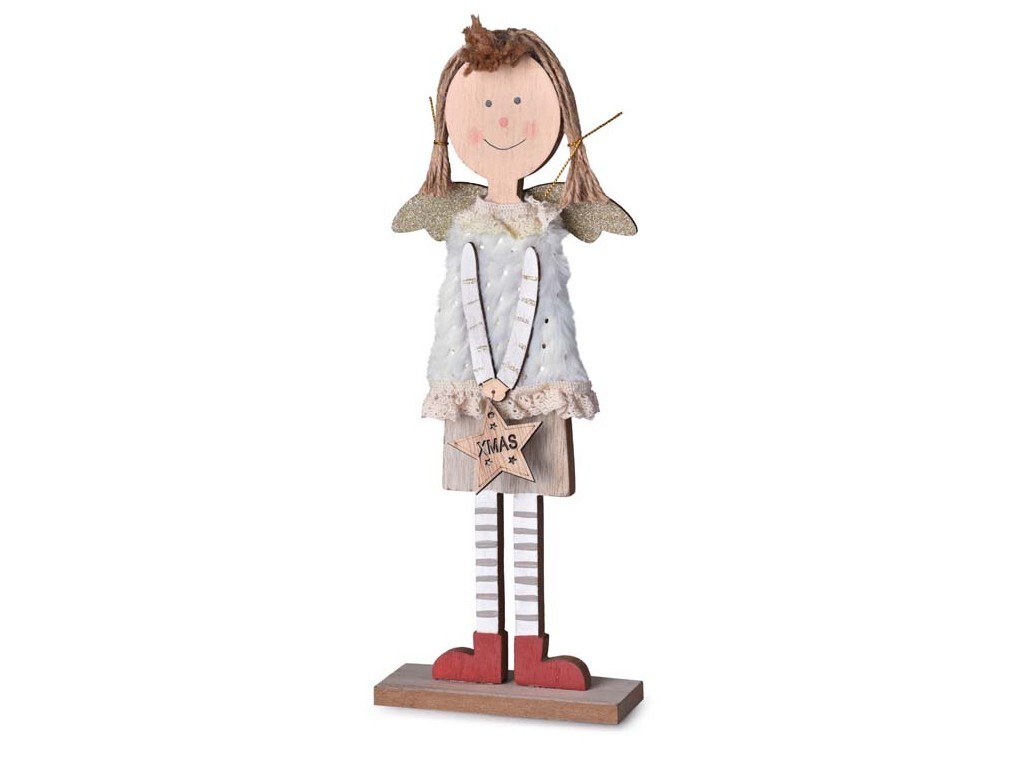 Dekorace dřevo 115x300mm Anděl na postavení, přírodní s glitrem+mix barev