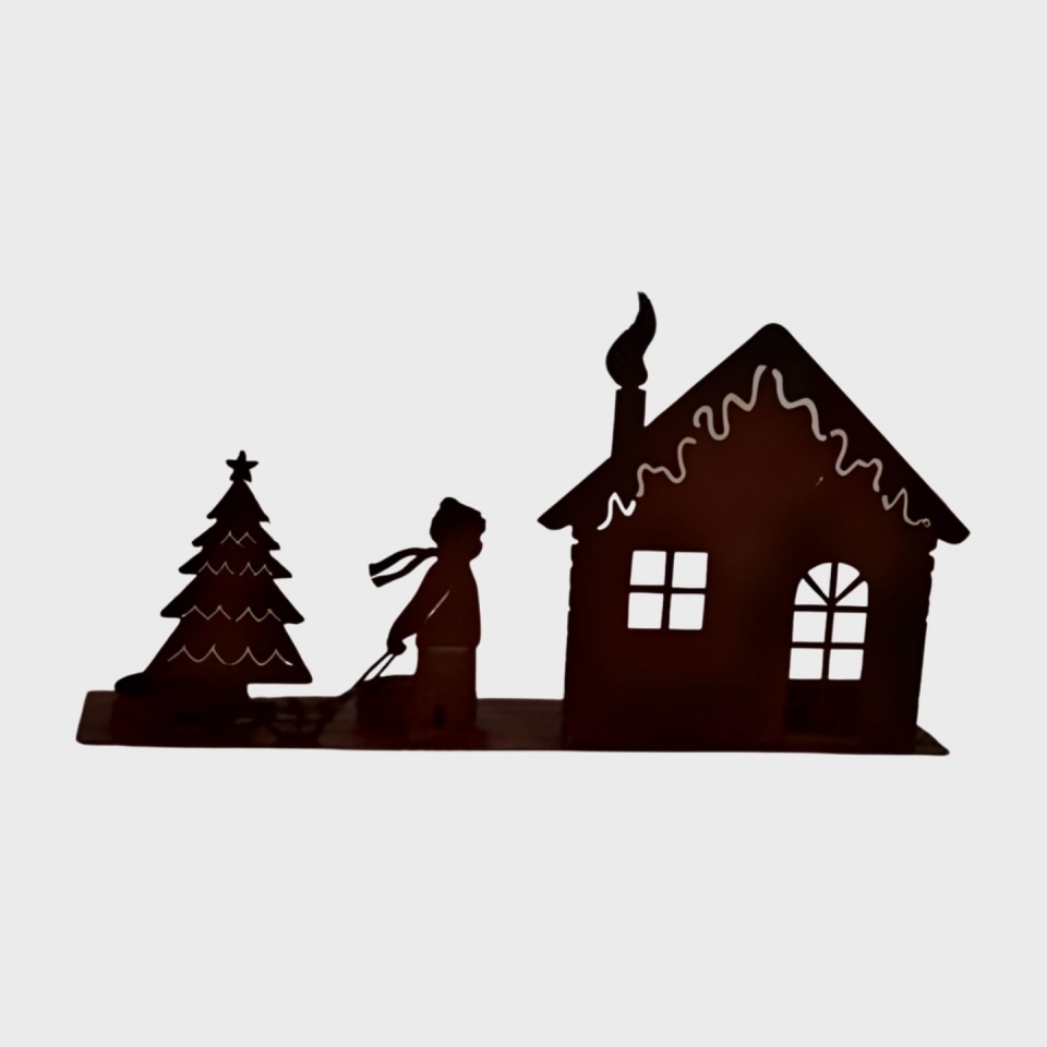Vánoční černá kovová dekorace se svícnem, 17 x 32 cm