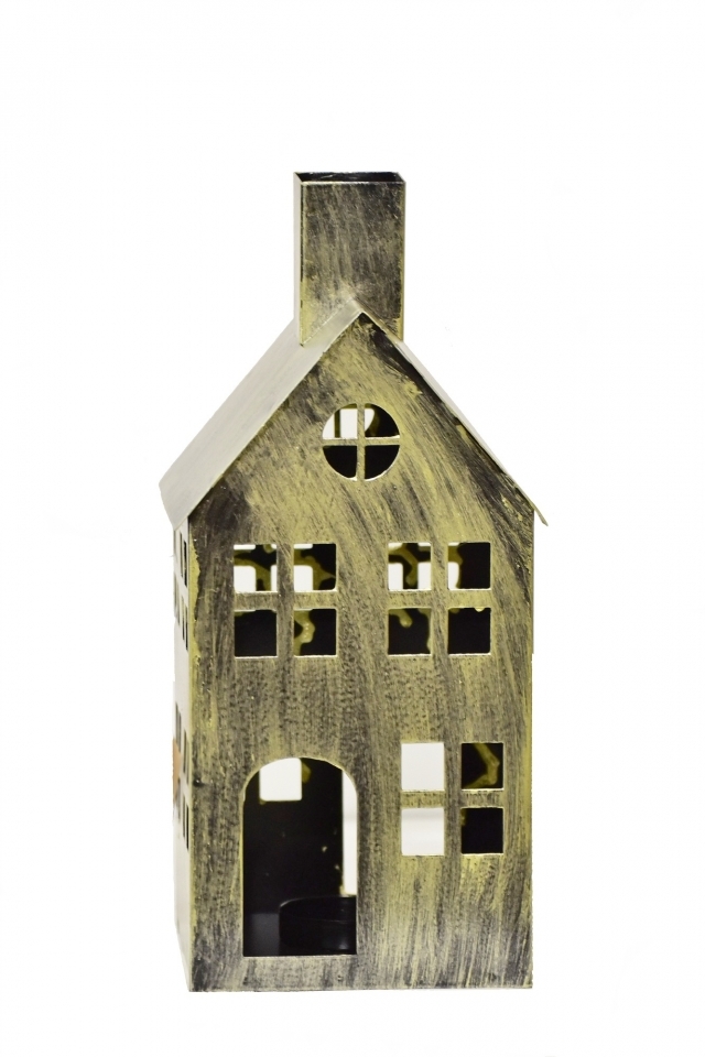 Kovový domeček na čajovou svíčku, champagne, 28x14x12,5 cm