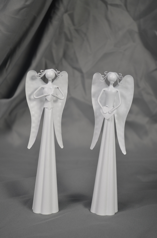 Plechový bílý anděl se srdíčkem 10,5 cm
