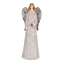 Anděl šedý, stříbrná křídla a srdce v ruce, polyresin.