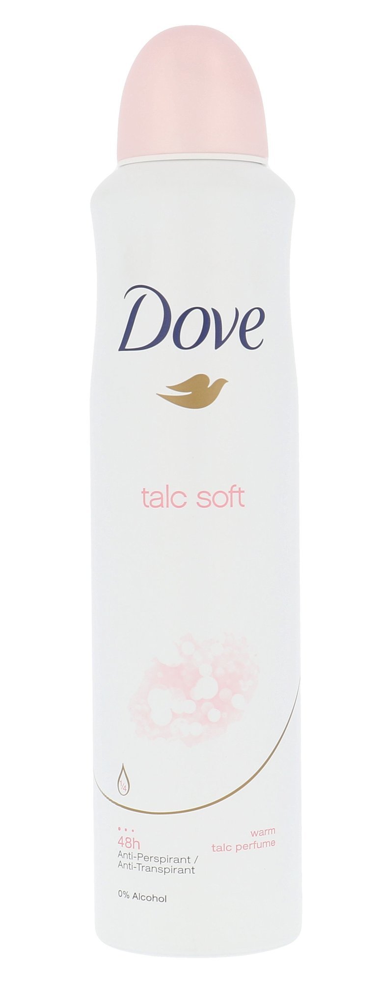 Antiperspirant Dove Talc Soft 48h.Antiperspirant Dove Talc Soft 48h dokonale chrání pokožku proti pocení po dobu 48 hodin. Bohaté složení pomáhá pokožku hydratovat a zklidňovat. Snižuje podráždění způsobené holením. Začněte svůj den s jemnou vůní antiperspirantu Talc Softt. Bez obsahu alkoholu.