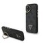 Guess PU 4G Strass Triangle Logo Stand Camera Frame MagSafe Zadní Kryt pro iPhone 16 Black