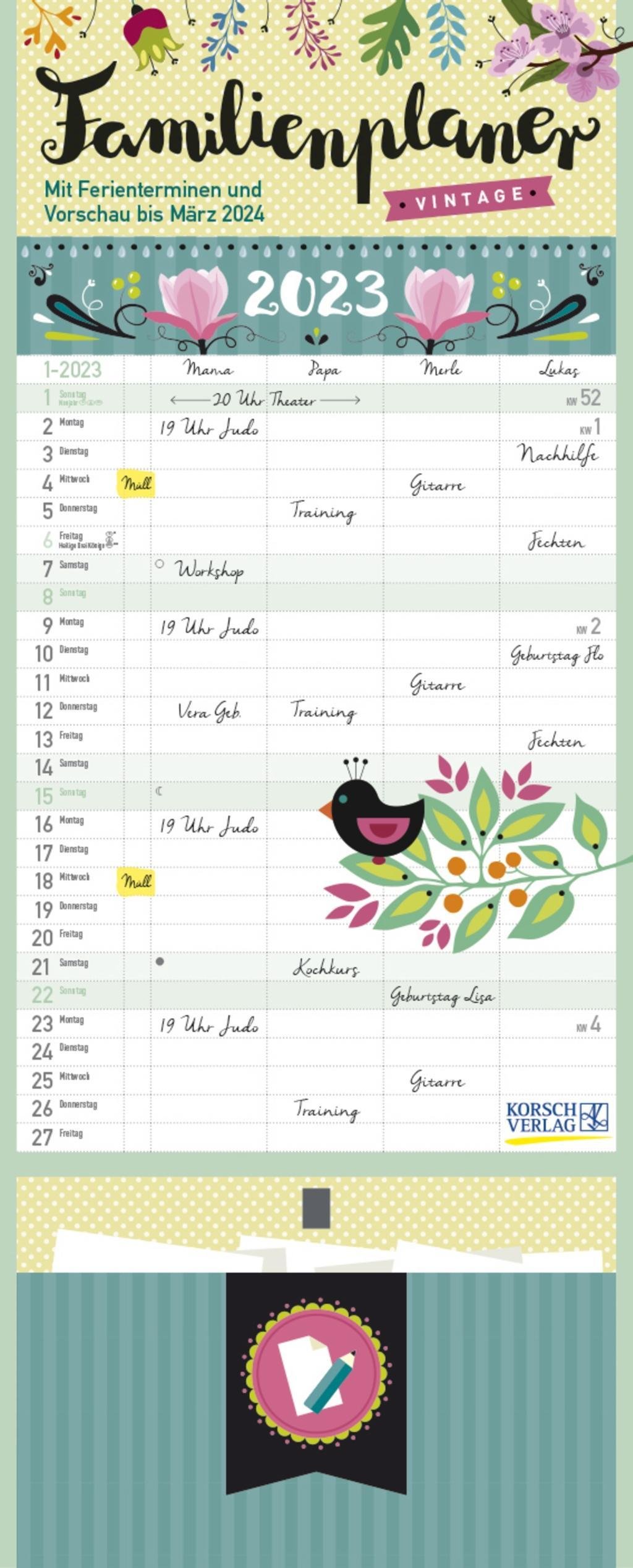 Familienplaner Vintage Zetteltasche 2023 (německy)