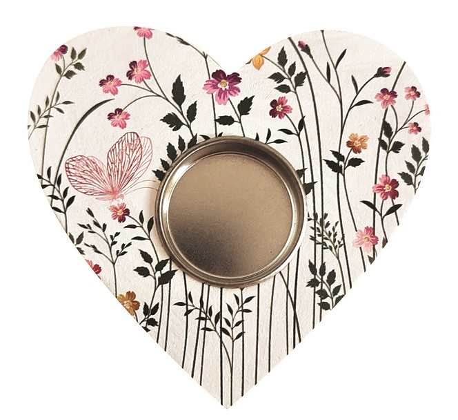 Svícen s dekorem loukyDřevěný svícen ve tvaru srdíčka s něžným motivem louky vytvoří příjemnou atmosféru teplého letního dne i u vás doma.Svícen je vhodný také jako dárek. Určeno na klasickou čajovou svíčku, nebo LED svíčku.  prečítať celé