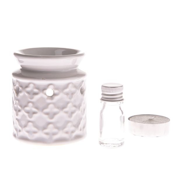 Keramická aromalampa + olej, svíčka, fresh linen, 0/96