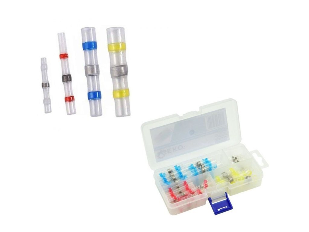 Letovací spojky s cínem 0,25-6mm2, sada 100ks GEKOLetovací spojky se smršťovací bužírkou pro snadné a rychlé spojení dvou vodičů. Při zatavení pomocí horkovzdušné pistole nebo plynového hořáku dochází k zaletování vodičů pomocí kroužku cínu uvnitř spojky. Díky průhledné bužírce lze po zatavení...
