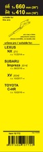 Sada dvou plochých stěračů FLAT (řidič + spolujezdec) se speciálním uchycením. Délky stěračů a systém uchycení na ramínko jsou přizpůsobeny vybraným vozům (viz tabulka použití).