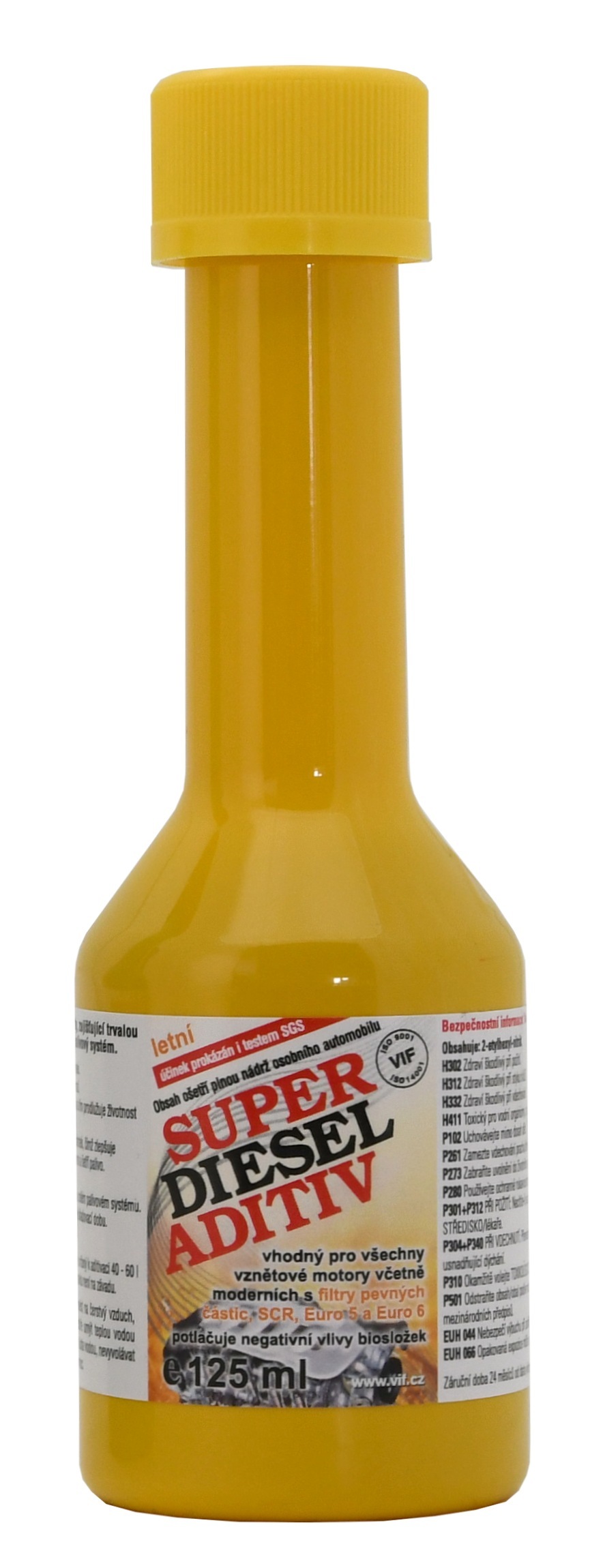 Letní přísada do nafty SUPER DIESEL ADITIV zvyšuje cetanové číslo, a tím zlepšuje spalování. Aditivum snižuje hlučnost motoru a zkracuje studený start. Multifunkční přísada do motorové nafty s protikorozními účinky udržuje čistotu vstřikovacích trysek včetně otvorů, a zabraňuje zanášení citlivých součástí motoru karbonovými nečistotami. Letní aditivum do nafty chrání palivové čerpadlo před opotřebením potlačením pěnivosti paliva v celém palivovém systému. SUPER DIESEL ADITIV ochrání váš motor před negativními účinky biosložky, která je povinnou složkou každého paliva.