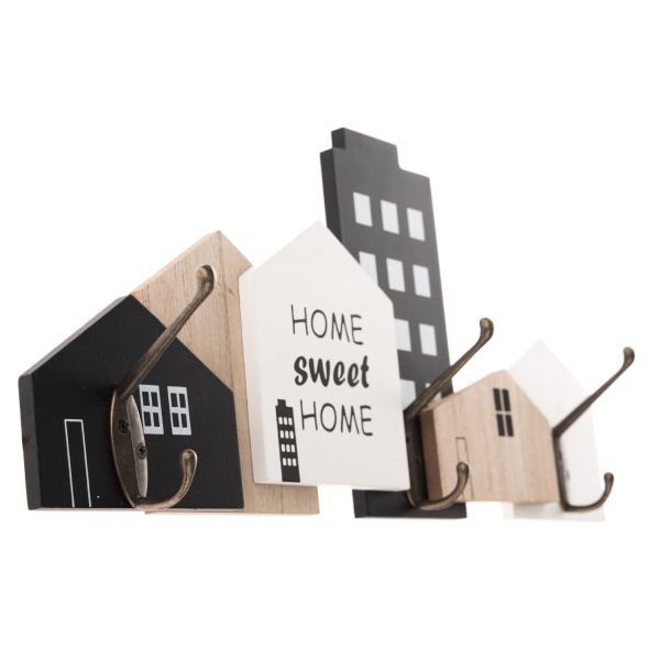 Stylový nástěnný věšák HOME SWEET HOME se 3 háčky. Jednoduchý a originální design rozzáří každý prostor ve kterém bude pomocníkem k odkládání kabátů a bund.