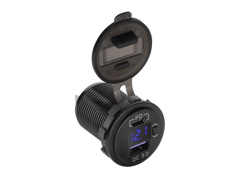 Nabíječka USB s QC a měřičem napětíTechnické parametry:- Indikátor napětí- Zásuvky: USB (QC 3.0), PD- Vstupní napětí: 12-24 V- Výstupní napětí USB: 5 V / 9 V / 12 V- Výstupní proud USB: 3 A / 2 A / 1,5 A- Výstupní napětí PD: 5 V / 9 V / 12 V / 15 V- Výstupní proud PD: 3 A / 2 A / 2,5...