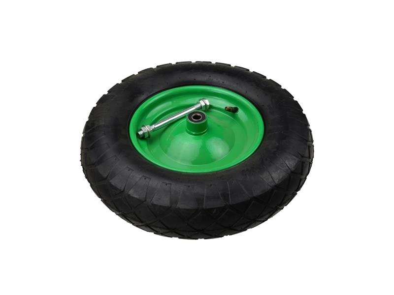 Nafukovací kolo pro záhradní vozíky, kolečka. Odolný ocelový disk malovaný práškovo poskytuje zvýšenou stabilitu. Celek je vyroben z vysoce kvalitních materiálů.