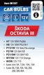 Sada autožárovek H7+H8 ŠKODA OCTAVIA III COMPASS Servisní sada žárovek a pojistek v plastové krabičce pro Octavia III.Sada je složena z náhradních 12V žárovek a pojistek pro vozidlo.Homologace E.Balení obsahuje:1ks H7 12V 55W PX26d1ks H8 12V 35W PGJ19-11sk PY21W 12V...