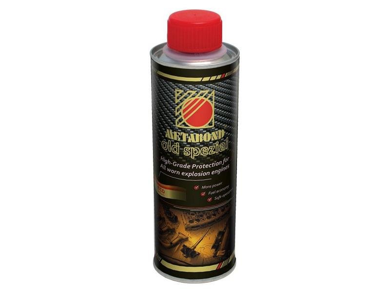 Metabond Old Spezial je zušlechťovač kovových povrchů vnitřních částí spalovacích motorů obsahující modifikátor viskozity. Je rovněž obohacen o keramické nanočástice. Tento výrobek výrazně snižuje tření a zároveň omezuje netěsnost. Zvláště se doporučuje do všech druhů opotřebovaných spalovacích motorů s vysokou spotřebou oleje. Přidává se do výrobcem předepsaného oleje.<br/><br/>Old Spezial obsahuje látku s vysokým obsahem viskózy, která zajišťuje těsnící účinek. Tímto se ve značné míře sníží spotřeba oleje a zvýší komprese.<br/><br/>Old Spezial dále obsahuje keramické nanočástice, které se pomocí motorového oleje rozptýlí na místa namáhaná třením. Tyto částice ulpí v povrchových nerovnostech kovových ploch (válce, písty, ložiska, ozubená kola, atd.), kde díky působení tlaku vytvoří tenkou vrstvu , která tyto nerovnosti vyhladí. Tato tenká vrstva zůstává v místech namáhaných třením i po odtečení motorového oleje a tím eliminuje negativní vlivy studených startů a výrazně tak napomáhá prodloužení životnosti motoru. Zároveň kromě snížení tření také pomáhá zmírňovat netěsnost a díky tomu také obsah jedovatých látek ve výfukových plynech.<br/><br/>Vzhledem k tomu, že keramické částice použité v přípravku Old Spezial jsou výrazně menší než otvory ve filtrační struktuře i nejjemnějších olejových čističů, nemohou tyto filtry ucpat.<br/><br/>VYUŽITÍ ADITIVA PRO VETERÁNY<br/>Je vhodný pouze pro opotřebované spalovací motory s vysokou spotřebou oleje, pro převodovky, diferenciály a hnací mechanismy.<br/><br/>POUŽITÍ<br/>U osobních automobilů se spotřebou 0,4-0,5 l oleje/1000 km použijte půl láhve (125 ml), při spotřebě 0,6-1 l oleje/1000 km použijte obsah celé láhve (250 ml). U nákladních automobilů se spotřebou větší než 1 l oleje/1000 km použijte obsah jedné láhve (250 ml), pokud je spotřeba oleje větší než 2 l/1000 km, použijte 2 láhve (500 ml) přípravku Old Spezial. Old Spezial aplikujte do zahřátého motoru! Před použitím nádobu zahřejte přibližně na teplotu 30 °C a dobře protřepejte. Po nalití přípravku do motoru uveďte motor na 10-15 minut do chodu. Přípravek Old Spezial se doporučuje ve stejném množství používat při každé výměně oleje. Používejte pouze s olejem předepsaným výrobcem automobilu.<br/><br/>SKLADOVÁNÍ<br/>Skladujte v suchu při teplotách -10 až +40 stupňů Celsia. Po otevření spotřebujte do 2 let. Zavřené spotřebovat do 5ti let od koupě.<br/><br/>CHARAKTERISTICKÉ VLASTNOSTI<br/>Kód barvy ASTM-D 1500-07: 7,5 ASTM<br/>Kinematická viskozita při 40°C, STN EN ISO 3104:1996: 185,6 mm²/s<br/>Kinematická viskozita při 100°C, STN EN ISO 3104:1996: 22 mm²/s<br/>Číslo kyselosti (TAN) ASTM D 664-07: 5,88 mg KOH/g<br/>Celkové číslo zásaditosti (TBN) ASTM D 4739-08: 19,87 mg KOH/g<br/>Korozivní účinek na destičky z mědi (100°C, 1 hod.) EN ISO 2160:2000: 1a - stupeň koroze<br/>