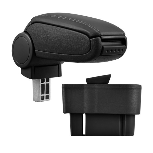 Loketní opěrka Opel Corsa D syntetická kůže černá rok výroby 2006 - 2014 s úložným prostorem je určena pro montáž mezi přední sedadla osobního automobilu. Opěrka poskytuje řidiči komfort a pohodlí. Komfort je zajištěn vrchní částí opěrky, která je vypolstrovaná pěnovou hmotou a potažená syntetickou kůží černé barvy. Po montáži loketní opěrky lze měnit její výšku ve sklopeném stavu. Samozřejmostí je možnost odklopení vrchní části opěrky, kde je úložný prostor pro drobné předměty (peněženka, brýle, nabíječka, adaptér aj.).