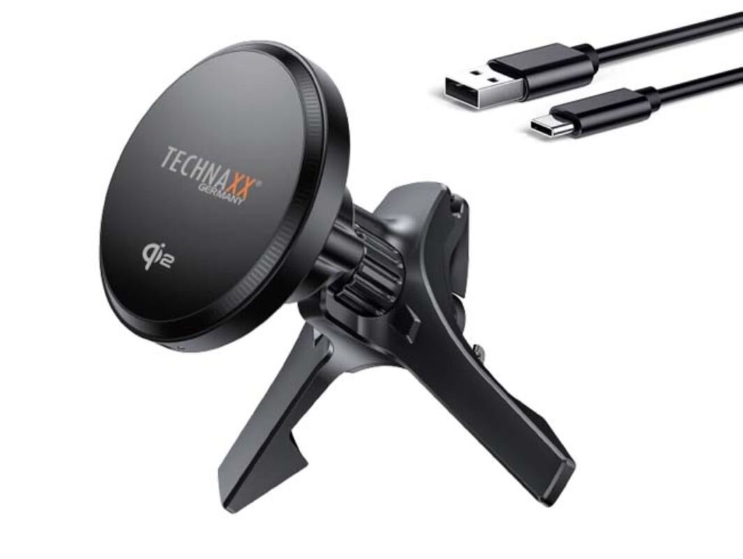 Technaxx Magnetický držák s bezdrátovou nabíječkou do auta, Qi2 15W, MagSafe, černý (TX-323)