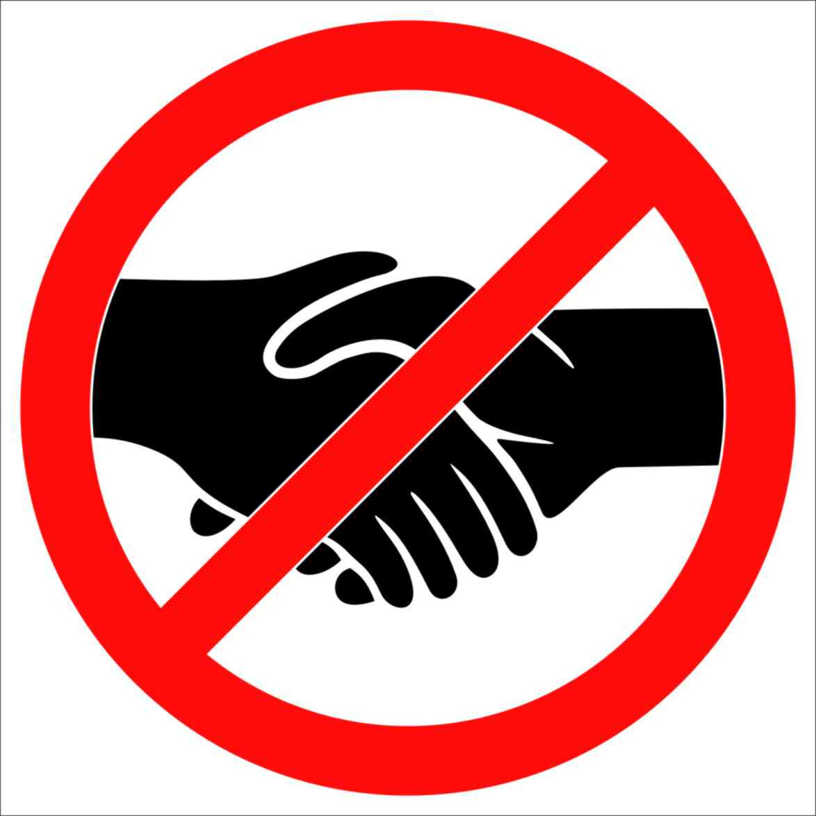 Samolepka s motivem zákazu podávání ruky (32cm)