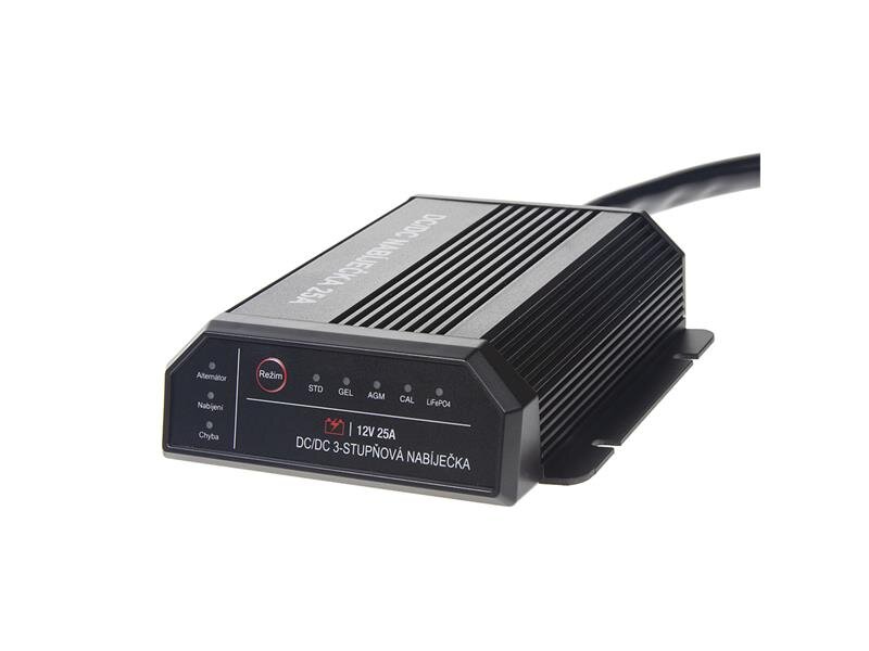 DC-DC 25 A Inteligentní nabíječka baterií je určena k nabíjení sekundární (pomocné) baterie během jízdy pomocí primární (startovací) baterie připojené k alternátoru.