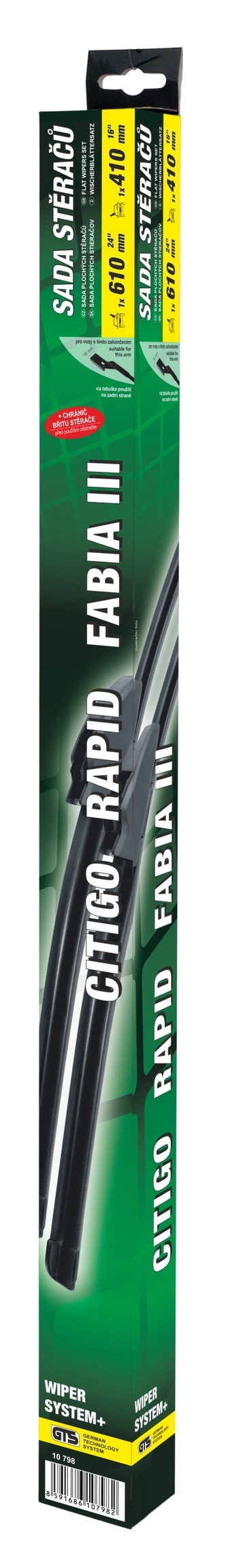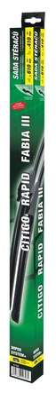Tato sada stěračů je vhodná pro vozy Škoda FABIA III, RAPID a CITIGO, ale i další vozy (viz tabulka použití). Kvalitní pružný člen plochého stěrače zajišťuje stejnoměrný tlak grafitového břitu v celé jeho délce, což zamezuje rozmazávání nečistot a vytváření pruhů.