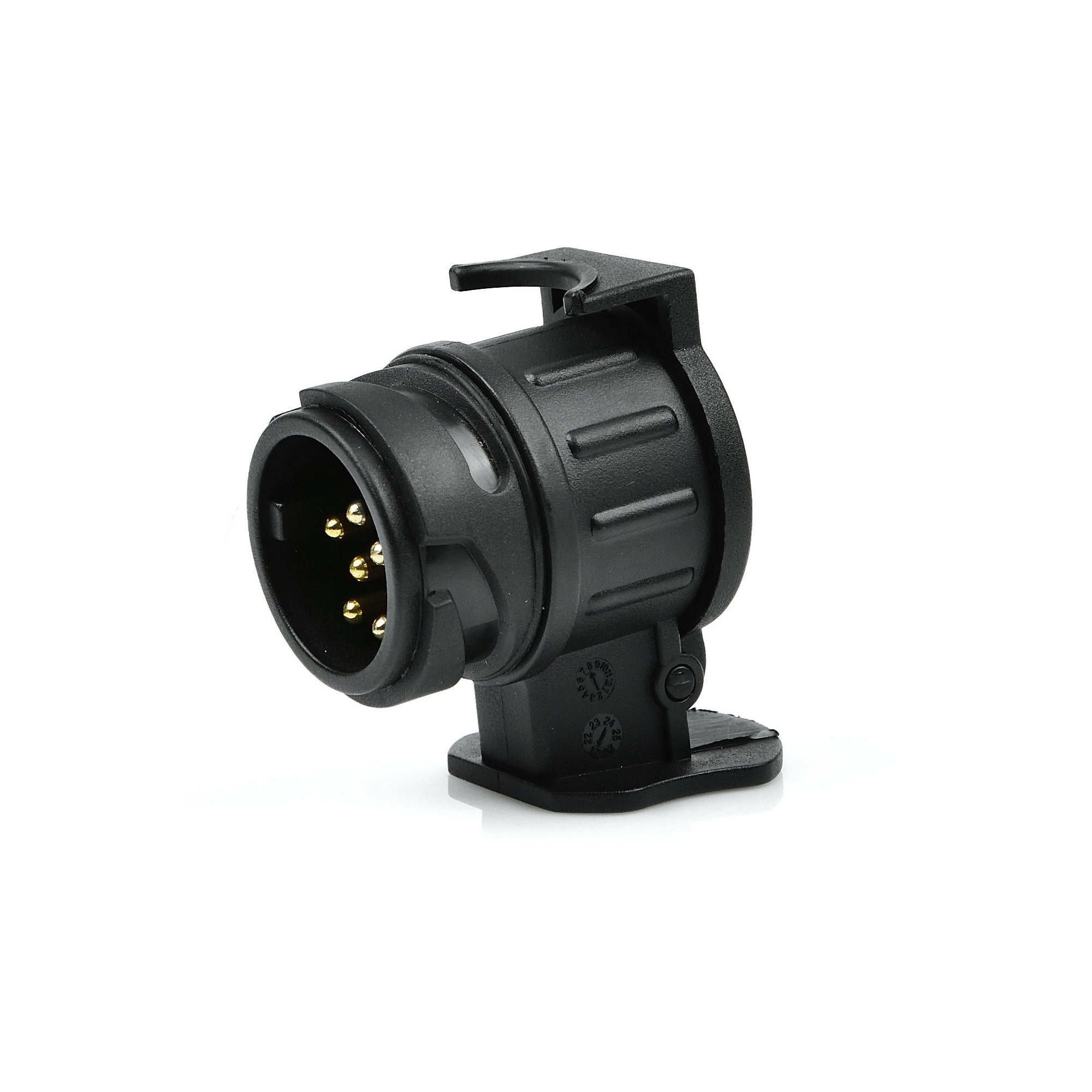 Redukce zásuvky tažného zařízení 7-13 pólů GEKOPlastový adaptér/redukce zásuvky tažného zařízení - ze 7 pin zásuvky na autě na 13 pin zástrčku na přívěsu, který umožňuje zapojení elektroinstalace vozidla s přívěsným vozidlem nebo nosičem, pokud mají rozdílné konektory. Adaptér je vyroben z...